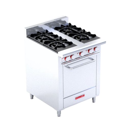 Estufa a Gas 4 quemadores y horno Medidas: 69 x 81 x 109 cm (Frente x fondo x alto). 1 Respaldo bajo de 0.090 m de altura. 5 Perillas zinc con ais...